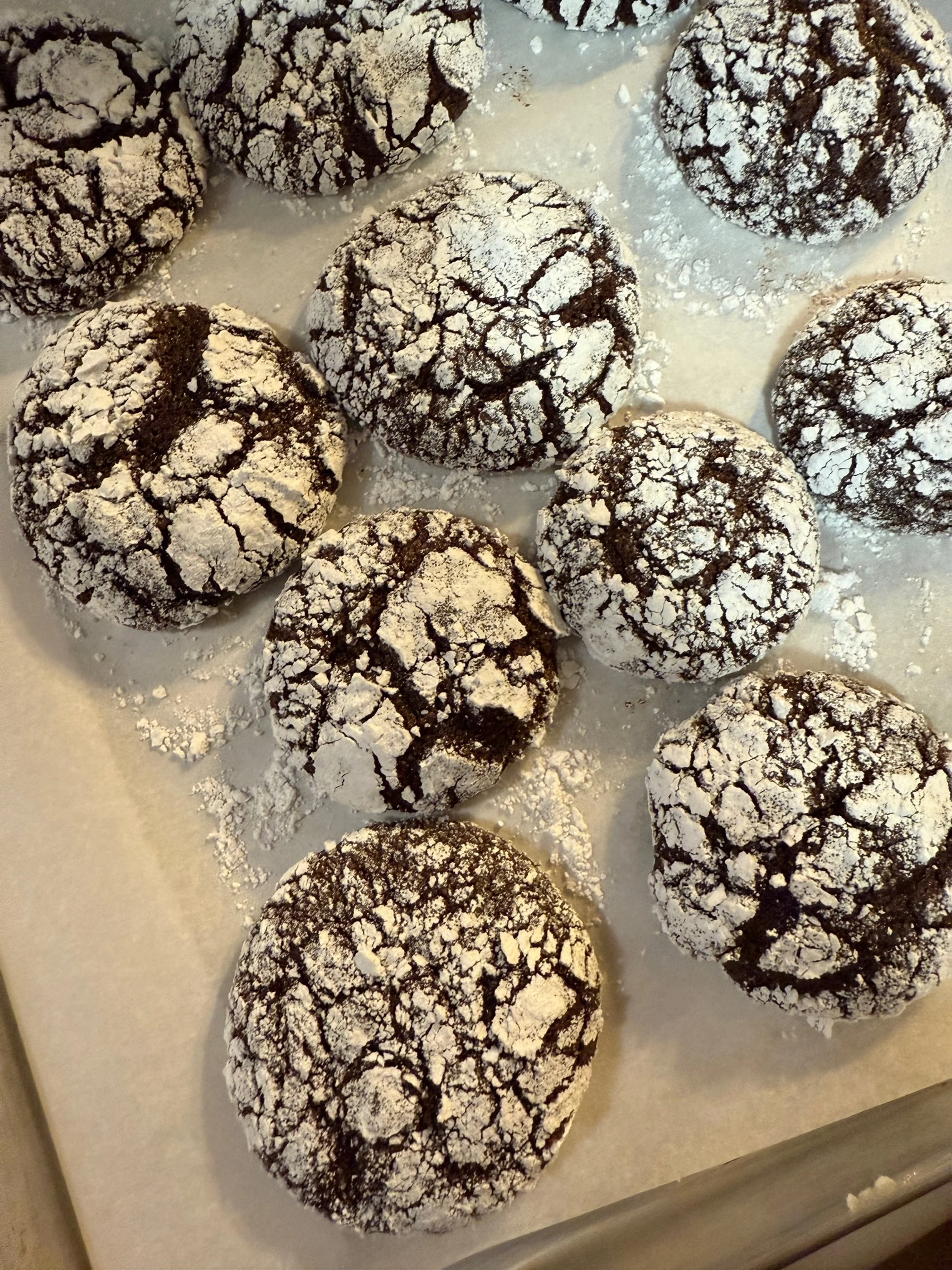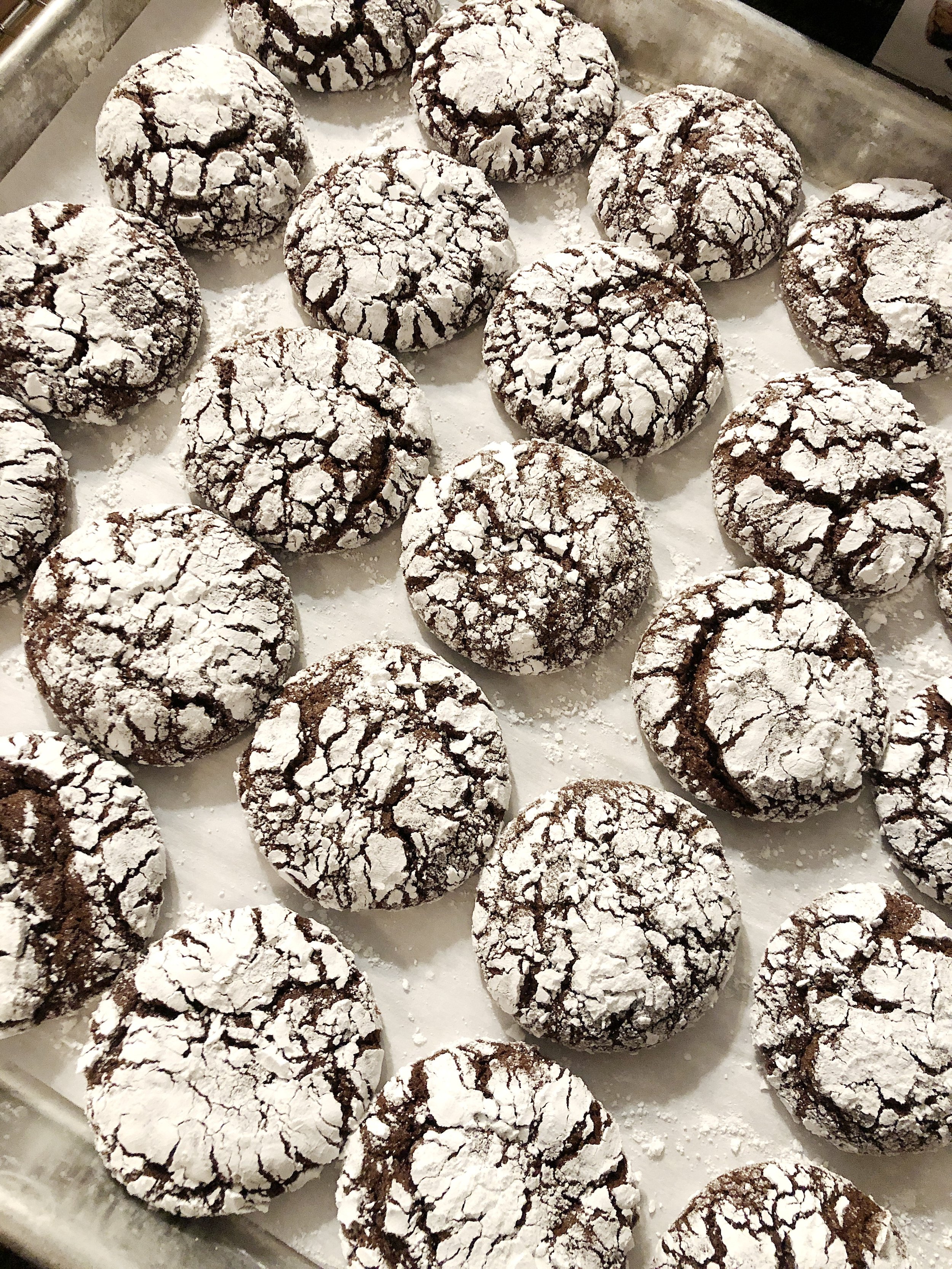 I don’t know anything about the origins of these cookies. Some people seem to have childhood memories of Crinkle Cookies. I did not encounter them until I was Mother of the Groom. The casual wedding reception was lovely but I admit that I was much distracted by these incredible cookies and hoped to “study” them afterwards for the purposes of replication.