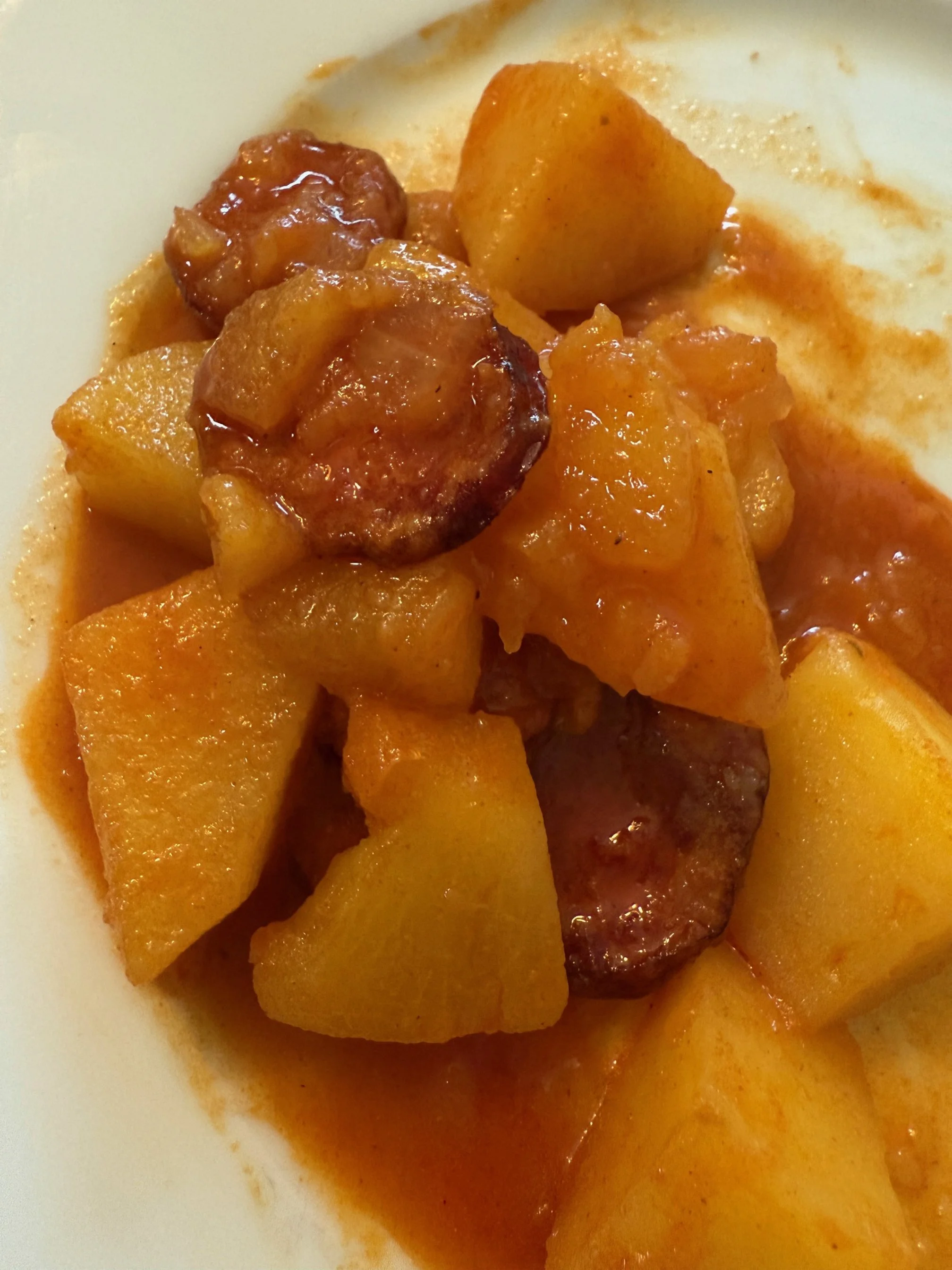 There are so many Hungarian recipes that start with “onions and paprika” that I have recipe books that devote an entire section to this. The most common onion/paprika combo is chicken, but the list goes on - pork, beef, veal, lamb, mushrooms, wild game. This dish starts with onions and paprika, then adds Hungarian smoked sausage and potatoes. I suppose it could be categorized as peasant food. My mother made it. I loved it. I have rarely made it. Who knows why? That will now change.